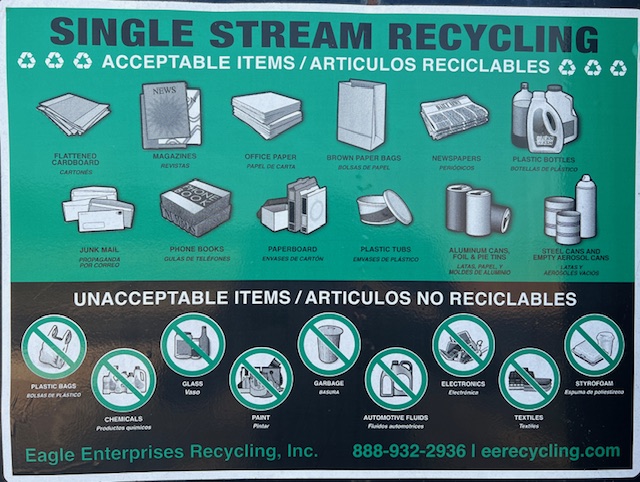 - Plastics #1 - 7, except #6 (look for the number inside the recycling triangle)